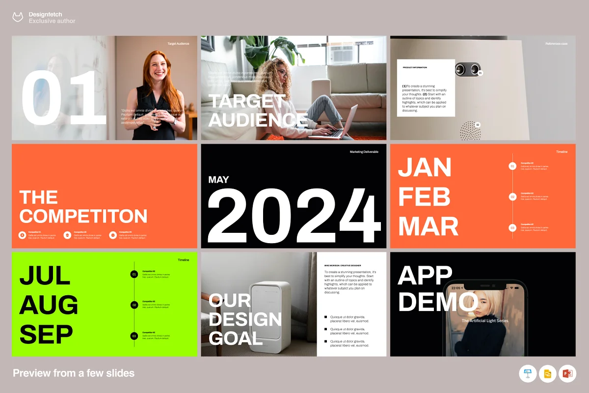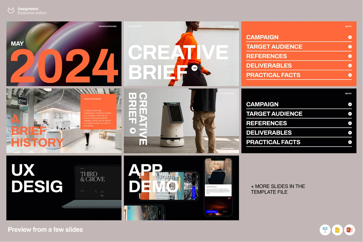 You don’t need 600 slides! Just the right slides to make your presentation POP. This template is ideal for agencies, the most important document is the creative brief. This straightforward presentation template provides a game plan for agencies to summarize the main points and important details of the project. This template introduces the campaign, its mission, and the target audience while addressing practicalities like the timeline and key deliverables.