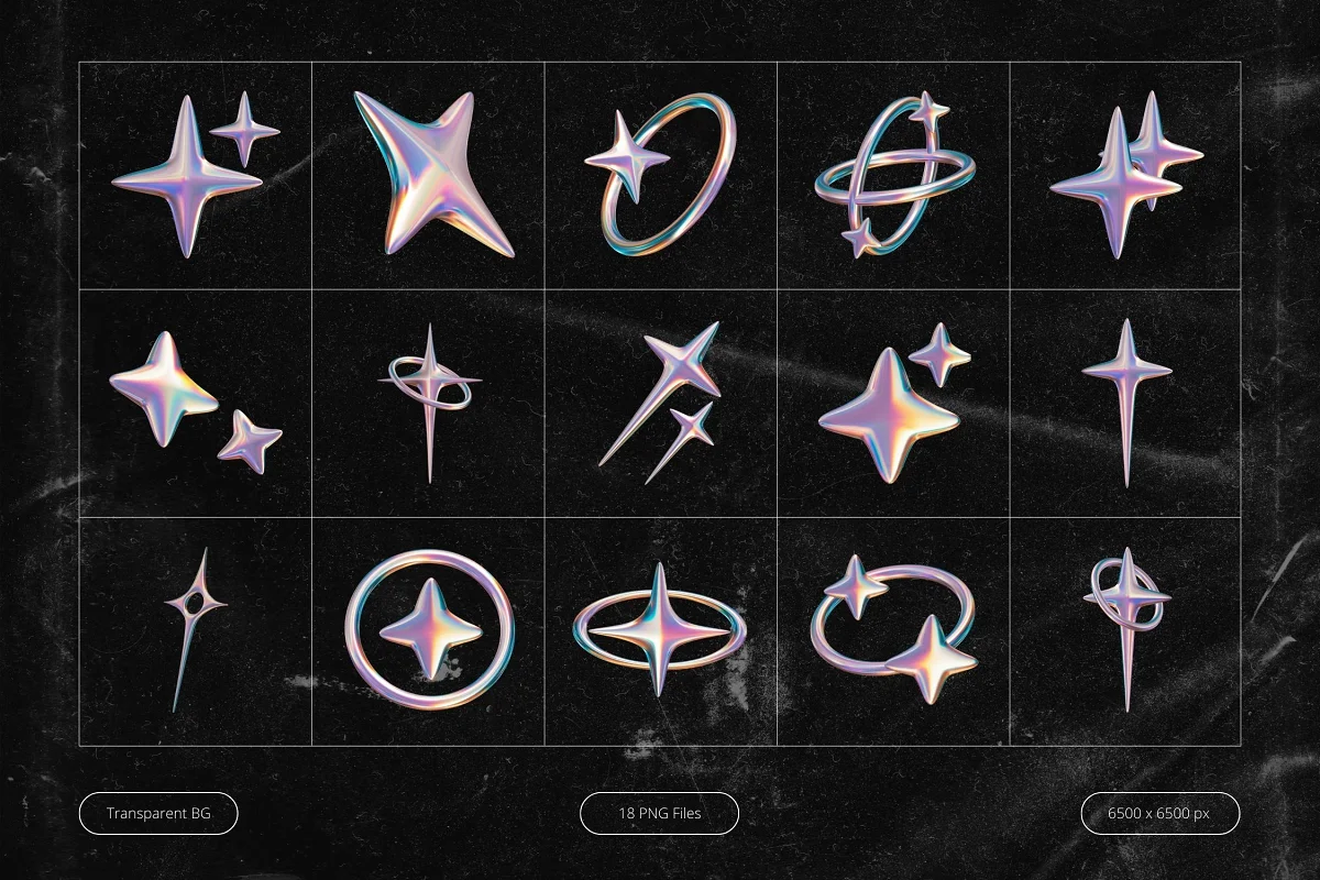 Unleash your creativity with our Y2K Sparkle Elements ! High-quality y2k-inspired sparkle elements that are perfect for posters, covers, web design, social media, packaging, or any other creative projects that require retro and trendy designs. 18 PNG files included with transparent backgrounds. High resolution at 6500 x 6500 px with 300 DPI.